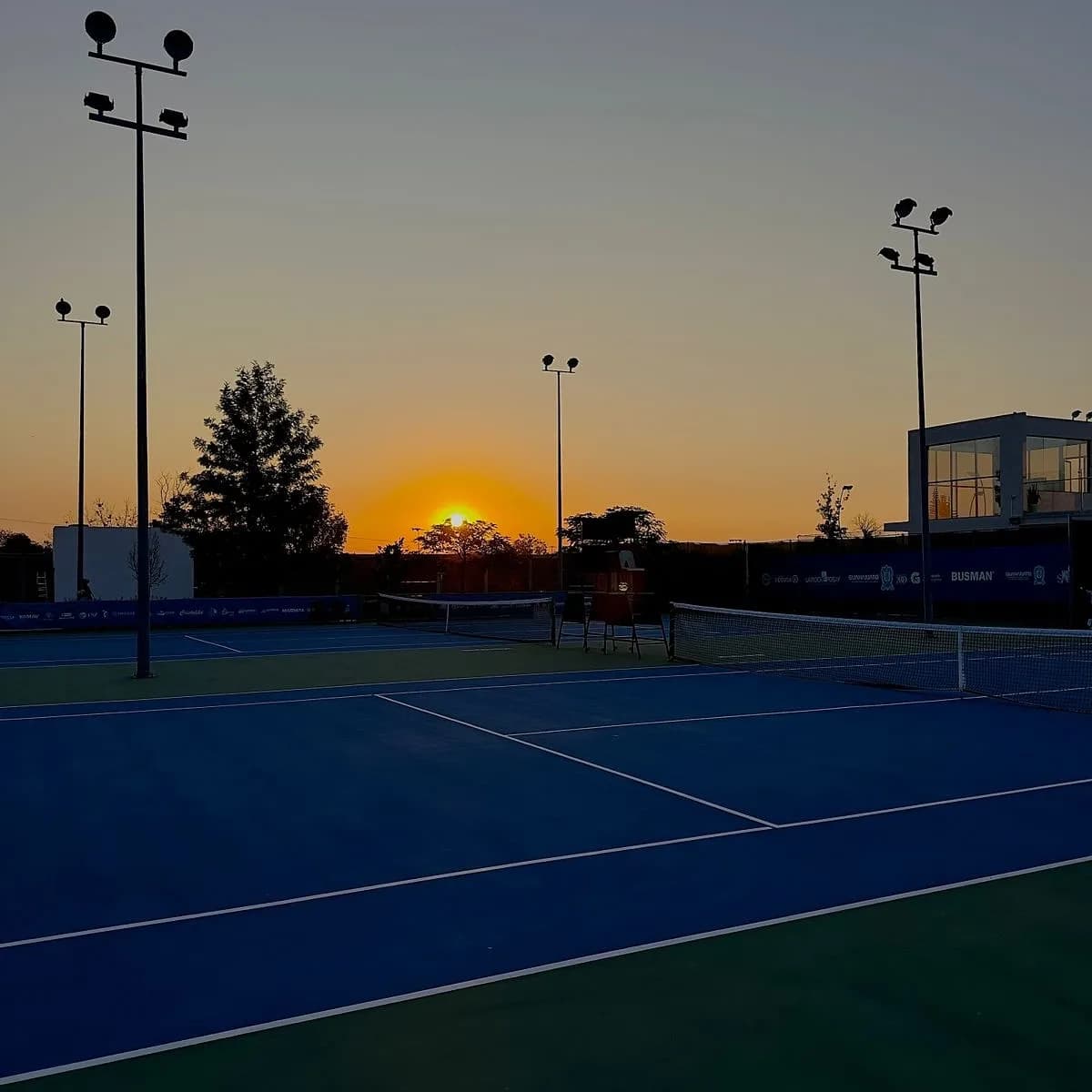 Cancha de superficie dura al aire libre. Iluminación LED para partidos nocturnos. Clases disponibles.